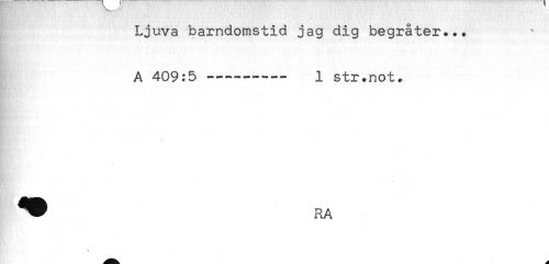 //// Ljuva barndomstid jag dig begråter... //// A 409:5 ---1 str.not. //// //// /
