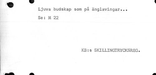 //// Ljuva budskap som på änglavingar... //// Se: M 22 //// KB:s SKILLINGTRYCKSREG. ////