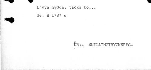 //// Ljuva hydda, täcka bo... //// ! _ Se: E 1787 e //// { S //// Mi' ' //// ib:s SKILLINGTRYCKSREG. //// 1 //// ! //// ' ; . //// * //// Y //// T ////