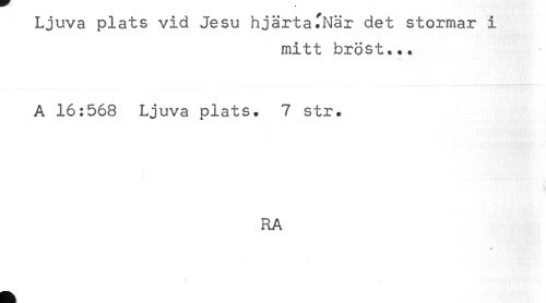 //// Ljuva plats vid Jesu hjarta.Nar det stormar i //// mitt bröst... //// A 16:568 Ljuva plats. 7 str. //// RA ////