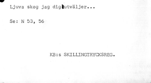//// Ljuva skog jag dig^utväljer... //// Se: N 53, 56 //// KB:s SKILLINGTRYCKSREG. //// ! ////