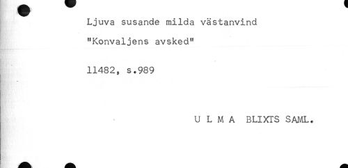 //// Ljuva susande milda västanvind //// "Konvaljens avsked" //// K.- //// 11482, s.989 //// < //// U L M A BLIXTS SAML. ////