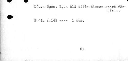 //// Ljuva ögon, ögon blå sälla timmar snart för- //// går. .. //// ^ ^ B 41, s.143 —-- 1 str. //// ) //// RA //// - ////