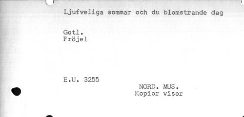 //// Ljufveliga sommar och du blomstrande dag //// Gotl. //// Fröjel //// E.U. 3255 //// ^ NORD. MUS. //// Kopior visor ////