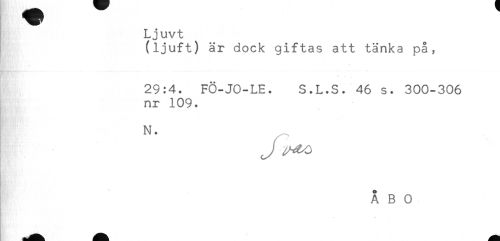 //// Ljuvt //// (ljuft) är dock giftas att tänka på, //// //// /29:4. FÖ-JO-LE. S.L.S. 46 s. 300-306 //// nr 109. //// N. ////