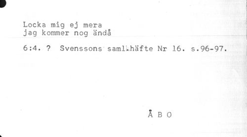 //// < //// < //// .j //// Locka mig ej mera ; //// jag kommer nog ändå //// ! //// 6:4. ? Svenssons saml^häfte Nr 16. s.96-97. ////