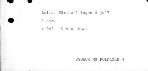 //// < //// ( //// ) //// ! //// & //// Lolla, Martha i Bogen å ja^? //// ^^ 1 str. //// ! //// ! //// } //// I s 263 S V A kop. //// ! //// M" //// - //// ) //// DYBECK MS FOLKLORE 4 //// - * //// * *' * * -*- t* * ////