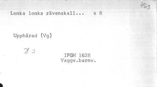 //// Lonka lonka rävenskall... s 8 //// t //// ** *......* , f //// < //// ) //// - //// t //// Upphärad (Vg) //// IFGH 1628 //// Vaggv.bamv. //// . ! //// i //// ! //// < ////