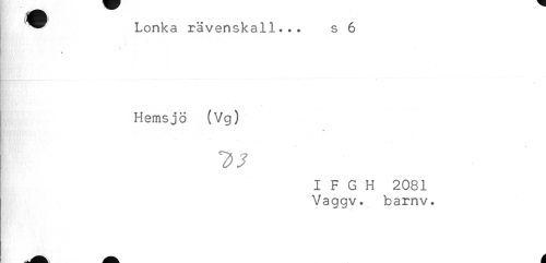 //// Lonka rävenskall... s 6 //// * //// . //// Hemsjö (Vg) //// I F G H 2081 //// Vaggv. barnv. ////