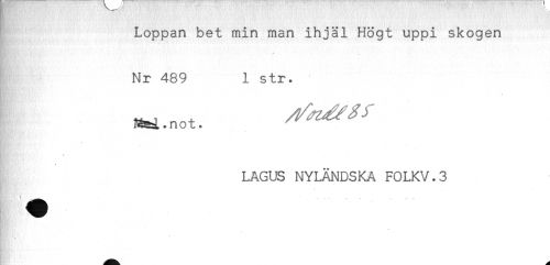 //// Loppan bet min man ihjäl Högt uppi skogen //// Nr 489 1 str. //// -. t //// * //// LAGUS NYLÄNDSKA F0LKV.3 //// ^ ' - - //// . //// ^^ - . //// ^ajjjh //// k"''.':* ////