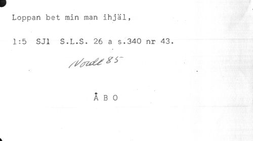 //// Loppan bet min man ihjäl, //// 1:5 SJ1 S.L.S. 26 a s.340 nr 43. //// ÅBO ////