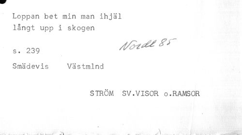 //// Loppan bet min man ihjäl //// långt upp i skogen //// Smädevis Västmlnd //// STRÖM SV.VISOR o.RAMSOR //// * //// * //// \ //// *"--. ' ^ y 't. / v ) - ^ < ' .. ... ^^ ////