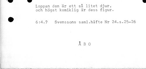 //// i Loppan den är ett så litet djur, //// ! och högst komiklig är dess figur. //// § //// ^^ 6:4.? Svenssons saml.häfte Nr 24.s.25-26 //// ÅBO //// * //// t. //// 3 //// & //// .. , ___^__ . . ____ ////