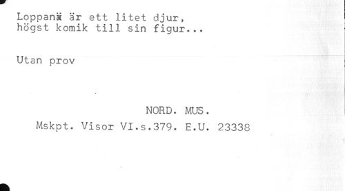 //// Loppanä är ett litet djur, ! //// högst komik till sin figur... //// Utan prov //// NORD. MUS. //// Mskpt. Visor VI.s.379. E.U. 23338 //// ! ////