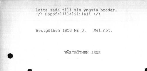 //// .. //// Lotta sade till sin yngsta broder, //// :/: Hoppfallilalililali :/: //// Westgöthen 1858 Nr 3. Mel.not. //// WÄSTGÖTHEN 1858 ////