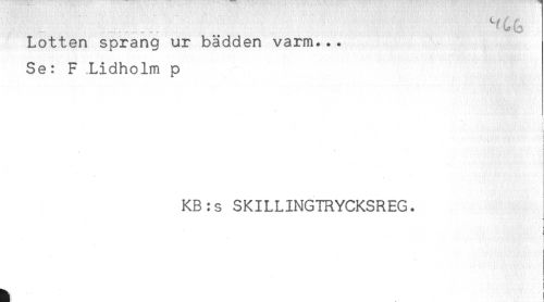 //// ^ ^ G //// Lotten sprang ur bädden varm... //// Se: F .Lidholm p //// ! //// i //// t //// KB:s SKILLINGTRYCKSREG. //// < //// i ////