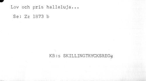 //// Lov och pris halleluja... //// Se: Zz 1873 b //// KB:s SKILLINGTRYCKSREG^ ////