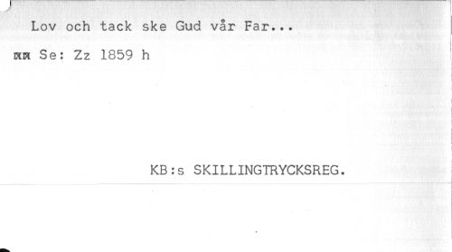 //// Lov och tack ske Gud vår Far... //// ma Se: Zz 1859 h //// < //// f //// i //// i //// : //// t //// ! //// i //// < //// ) //// KB:s SKILLINGTRYCKSREG. //// i //// i //// t //// < ////