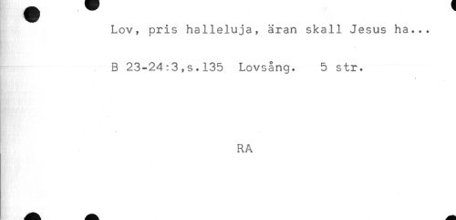 //// Lov, pris halleluja, äran skall Jesus ha... //// * //// B 23-24:3,s.l35 Lovsång. 5 str. //// RA ////