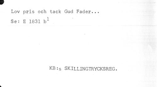 //// Lov pris och tack Gud Fader... //// Se: E 1831 b^ //// KB:g SKILLINGTRYCKSREG. ////