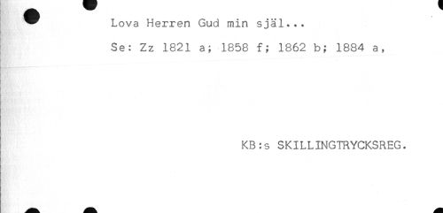 //// Hr //// ^ Lova Herren Gud min själ... //// Se: Zz 1821 a; 1858 f; 1862 b; 1884 a, //// } //// KB:s SKILLINGTRYCKSREG. ////