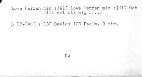 //// Lova Herren min själf Lova Herren min själf Och //// allt det uti mig är... //// B 23-24:3,5.132 Davids 103 Psalm. 9 str. //// RA //// . -'-**..<'-*.-- t'' <\ ' ; t. -t' .'.. .< * - * ' . - ////