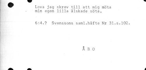 //// ^^ Lova jag skrev till att mig möta //// min egen lilla älskade söta, //// 6:4.? Svenssons saml.häfte Nr 31.s.102. //// ÅBO ////