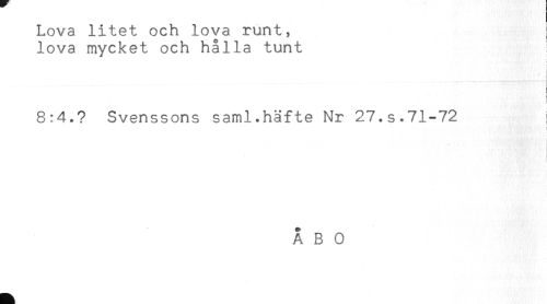 //// Lova litet och lova runt, //// lova mycket och hålla tunt //// 8:4.? Svenssons saml.häfte Nr 27.s.71-72 ! //// i ////