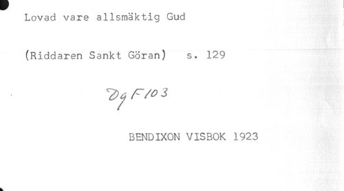 //// Lovad vare allsmäktig Gud //// (Riddaren Sankt Göran) s. 129 //// BENDIXON VISBOK 1923 ////
