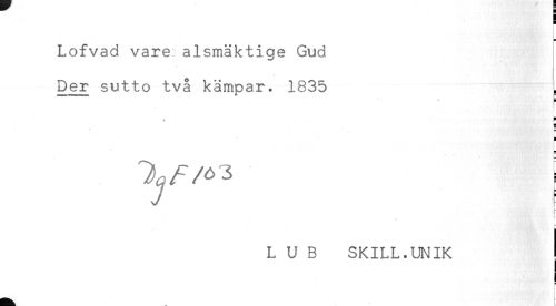 //// H //// Lofvad vare: alsmäktige Gud //// Der sutto två kämpar. 1835 L //// i //// t F //// H //// B //// i //// t //// L U B SKILL.UNIK //// ^^ I //// - ^ ////