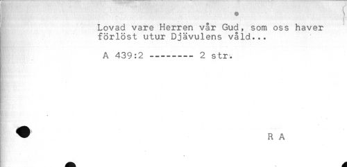 //// ( //// i. * ) //// Lovad vare Herren var Gud, som oss haver //// förlöst utur Djävulens våld... //// A 439:2 --- 2 str. //// & a^* ////