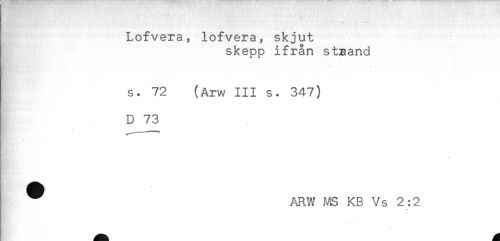 //// Lofvera, lofvera, skjut //// skepp ifrån stsand //// s. 72 (Arw III s. 347) //// D 73 //// ARW MS KB Vs 2:2 //// * //// Ew^ * * ////