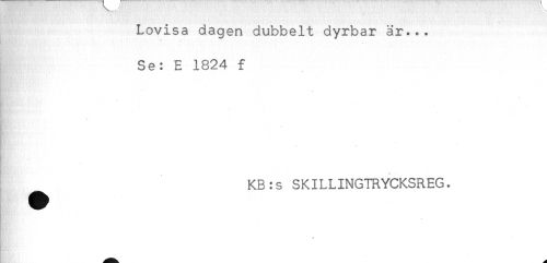 //// Lovisa dagen dubbelt dyrbar är... //// - //// Se: E 1824 f //// KB:s SKILLINGTRYCKSREG. ////