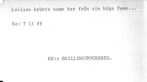 //// Lovisas krönta namn har från sin höga famn... //// Se: T 11 ff //// t //// KB:s SKILLINGTRYCKSREG. ////