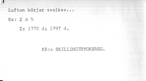 //// Luften börjar svalkas... //// Se: Z d 5 //// Zz 1772 d; 1797 d, //// KB:s SKILLINGTRYCKSREG. ////