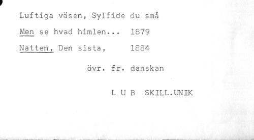 //// Luftiga väsen, Sylfide du små //// Alen se hvad himlen... 1879 //// Natten, Den sista, 1884 //// övr. fr. danskan //// L U B SKILL.UNIK ////