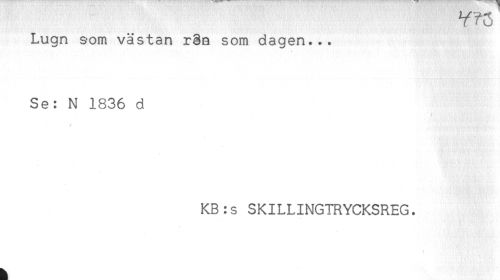 //// Yf3 //// Lugn som västan r§n som dagen... //// Se: N 1836 d //// //// /KB:s SKILLINGTRYCKSREG. ////