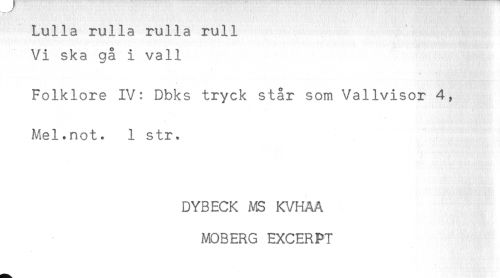 //// *- //// Lulla rulla rulla rull //// Vi ska gå i vall //// Folklore IV: Dbks tryck står som Vallvisor 4, //// Mel.not. 1 str. //// DYBECK MS KVHAA //// MOBERG EXCERPT ////