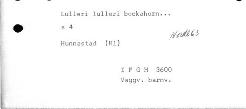 //// Lulleri lulleri bockehorn... //// Hunnestad (Hl) //// I F G H 3600 //// Vaggv. barnv. ////