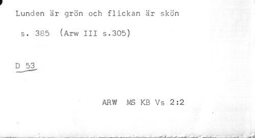 //// Lunden är grön och flickan är skön //// s. 385 (Arw III s.305) //// ARW MS KB Vs 2:2 ////