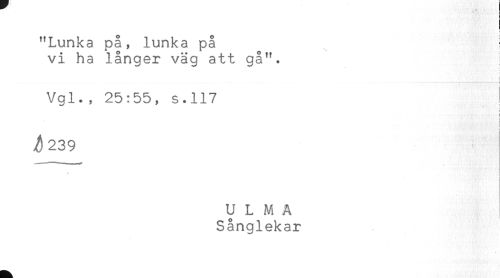 //// "Lunka på, lunka på //// vi ha långer väg att gå". //// Vgl., 25:55, s.117 //// t //// i //// t //// ! //// i //// ^239 //// U L M A //// Sånglekar ////