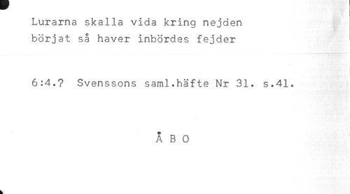 //// Lurarna skalla vida kring nejden //// börjat så haver inbördes fejder //// * //// 6:4.? Svenssons saml.häfte Nr 31. s.41. //// ÅBO ////