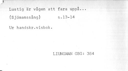//// Lustig är vågen att fara uppå... //// (Sjömanssång) s.13-14 //// Ur handskr.visbok. //// LIUNGMAN GBG: 384 ////