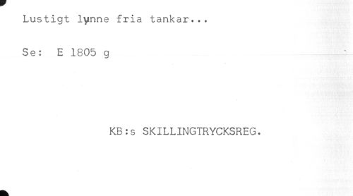 //// Lustigt lynne fria tankar... //// Se: E 1805 g //// KB:s SKILLINGTRYCKSREG. ////