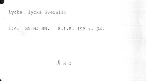 //// Lycka, lycka överallt //// - //// 1:4. EN-HJ-SN. S.L.S. 195 s. 94. ////
