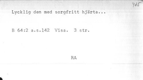 //// * * //// Lycklig den med sorgfritt hjärta... //// B 64:2 a.s.142 Visa. 3 str. //// RA ////