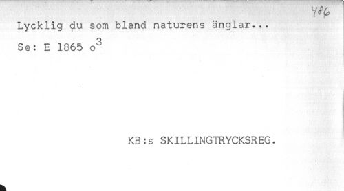 //// Lycklig du som bland naturens änglar... //// Se: E 1865 o^ //// - //// * //// < . , ' i i * . . ) //// KB:s SKILLINGTRYCKSREG. ////