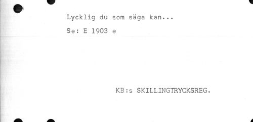//// Lycklig du som säga kan... //// Se: E 1903 e //// - //// KB:s SKILLINGTRYCKSREG. ////