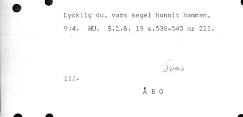 //// Lycklig du, vars segel hunnit hamnen, //// 9:4. MU. S.L.S. 19 s.538-540 nr 211. //// 111. ////