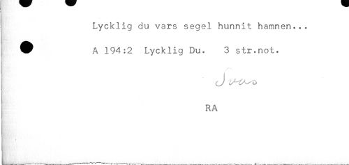 //// Lycklig du vars segel hunnit hamnen... //// ^ A 194:2 Lycklig Du. 3 str.not. //// (J //// RA ////